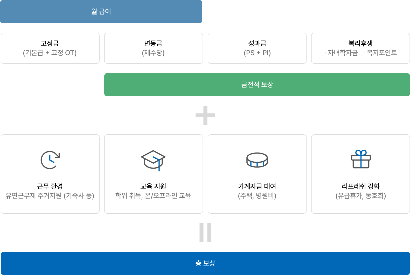 · 본인 및 가족 결혼, 고희/산수 · 본인 및 배우자 출산, 가족 부고 등 · 경조금/화환/경조휴가 등 지원 · 복리후생 포인트 지급(분기 1회) |