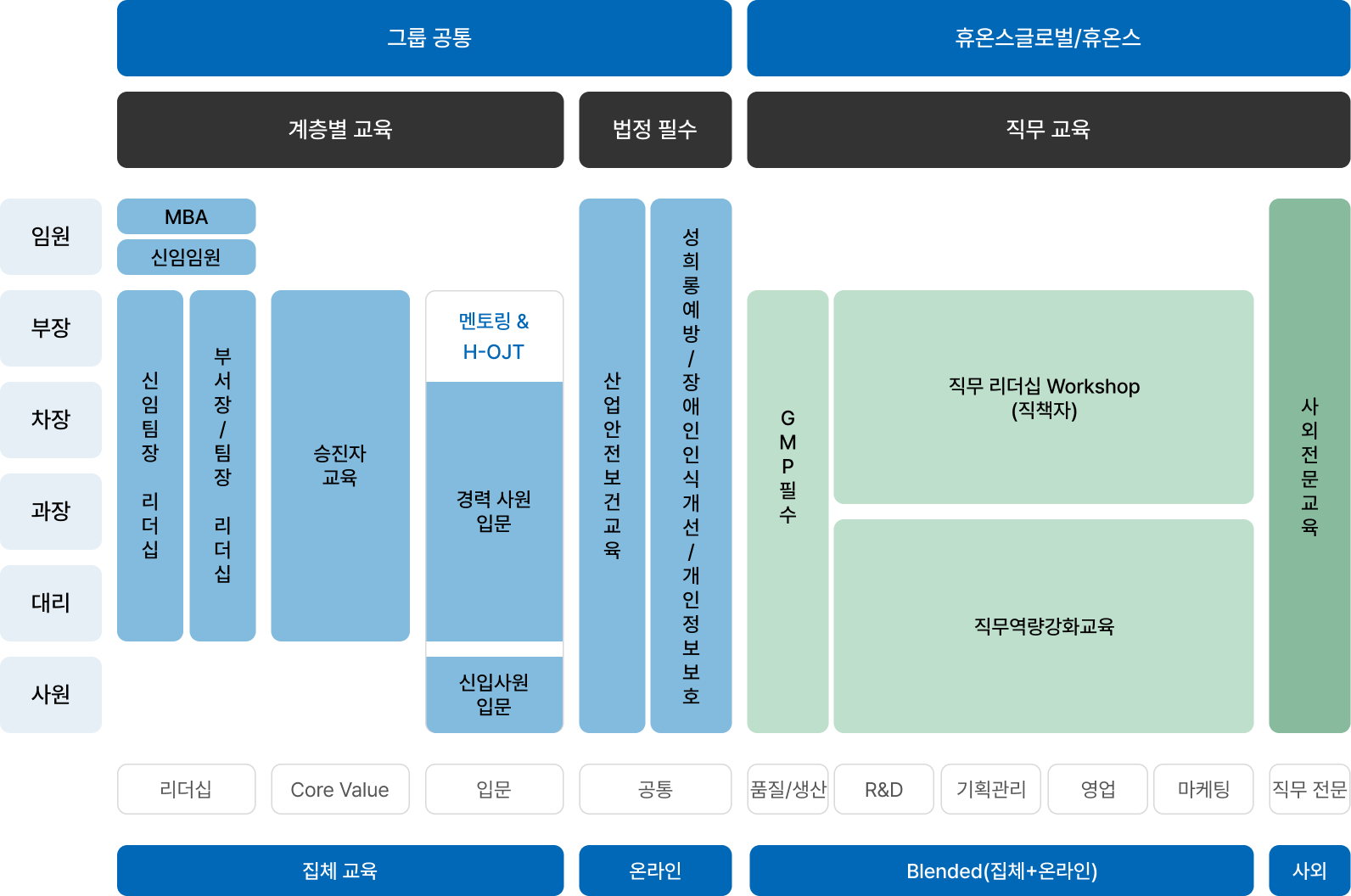 | 휴온스 | 임직원 총 교육시간 | 시간 | 32,201 | 36,321 | 37,128 |