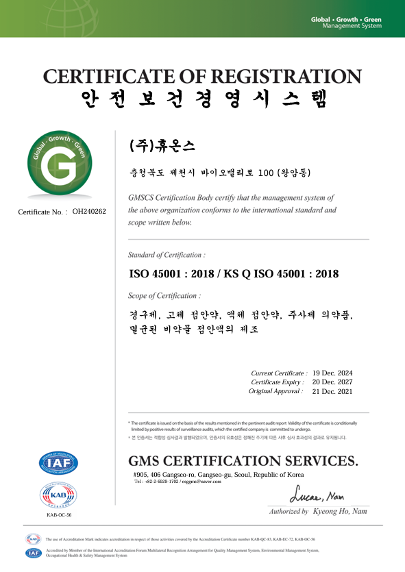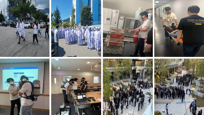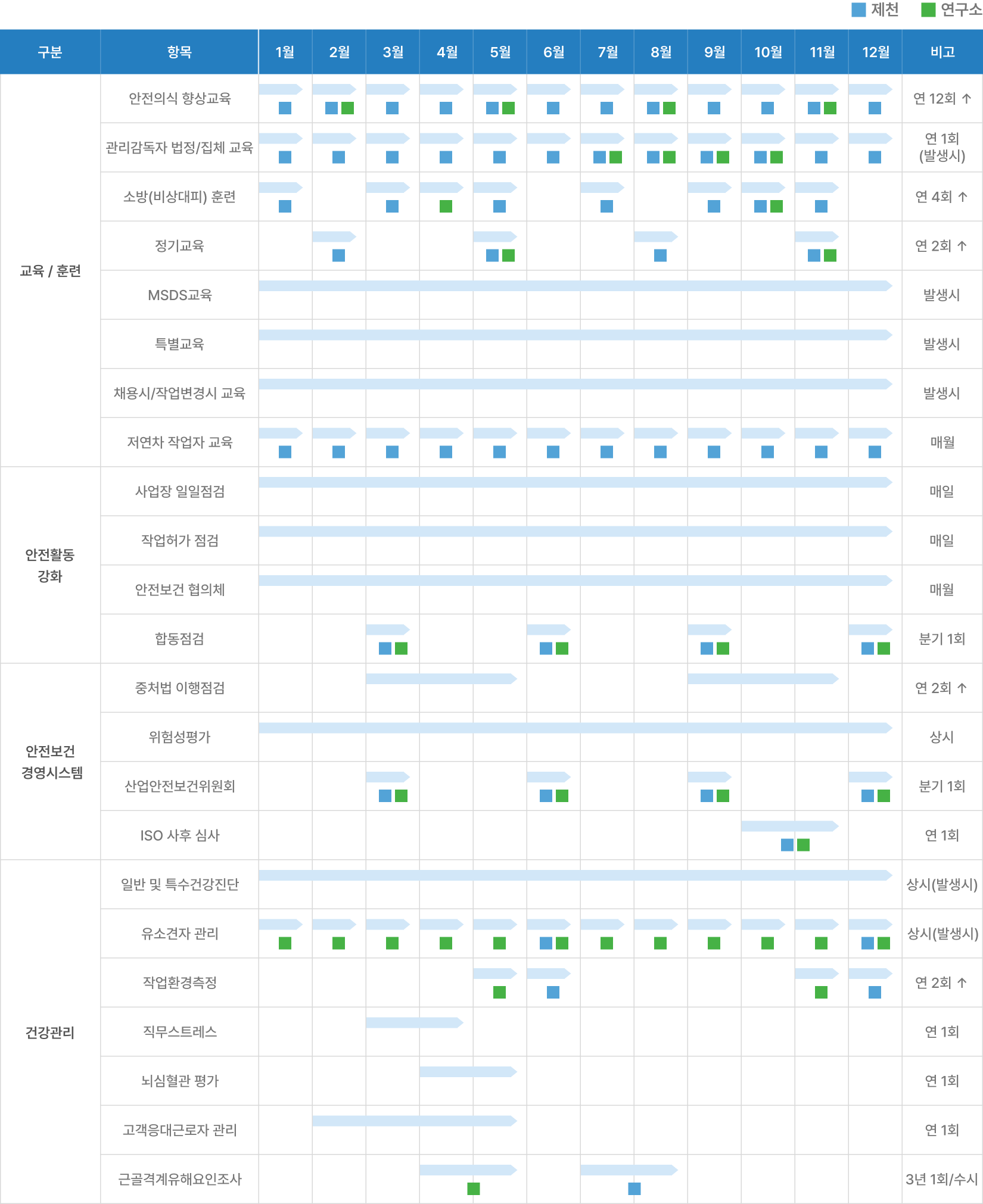 안전관리감독자(연 4회), 생산/품질 임직원(연 12회), 비상사태 훈련(연 4회)