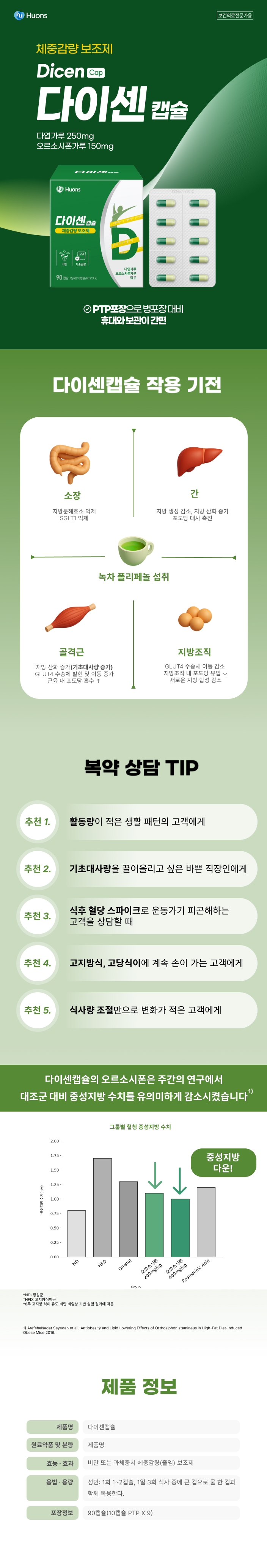 비만 또는 과체중시 체중감량(줄임) 보조제